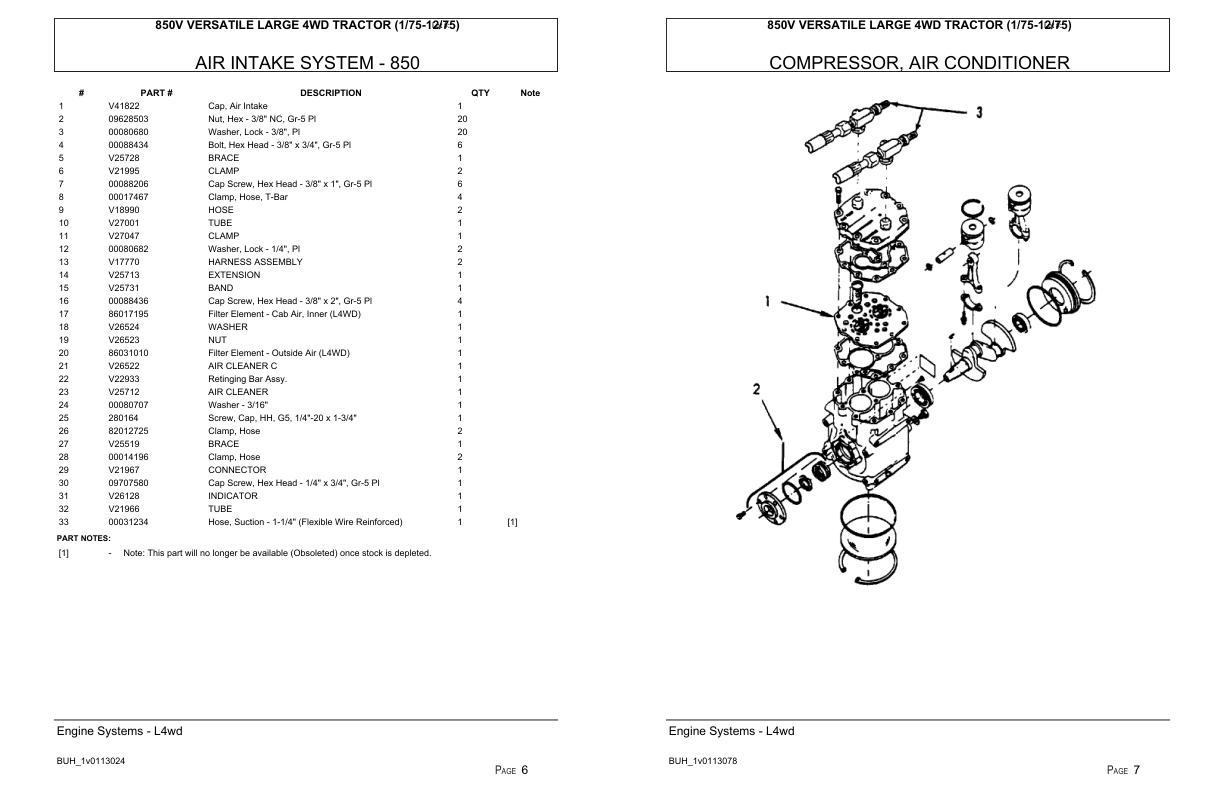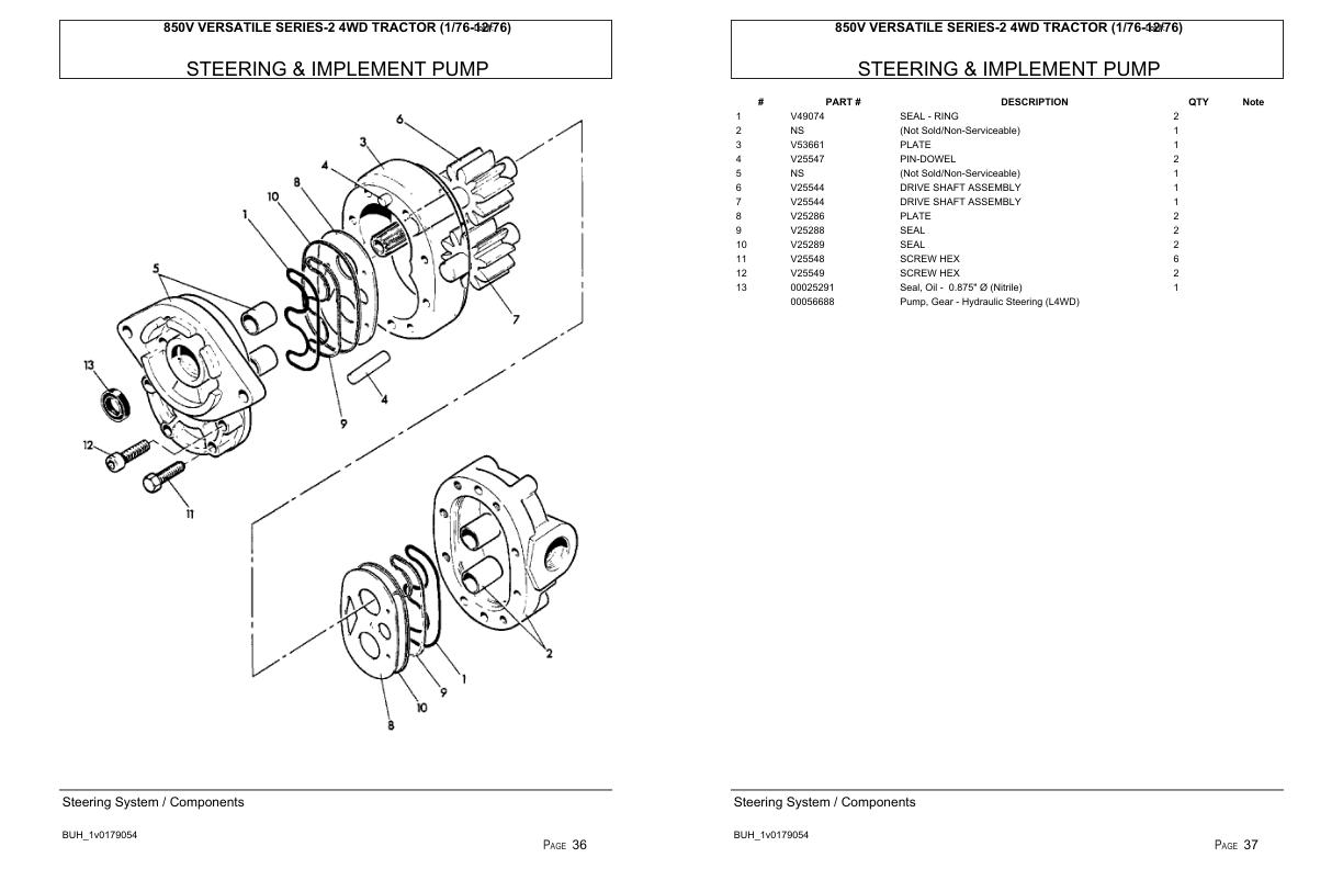 Versatile Tractor 850V Series2 4WD Parts Catalog 1976