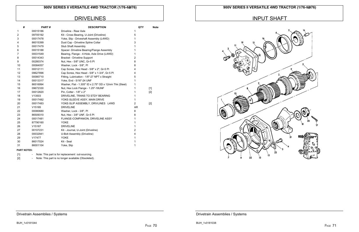 Versatile Tractor 900V Series II 4WD Parts Catalog 1976