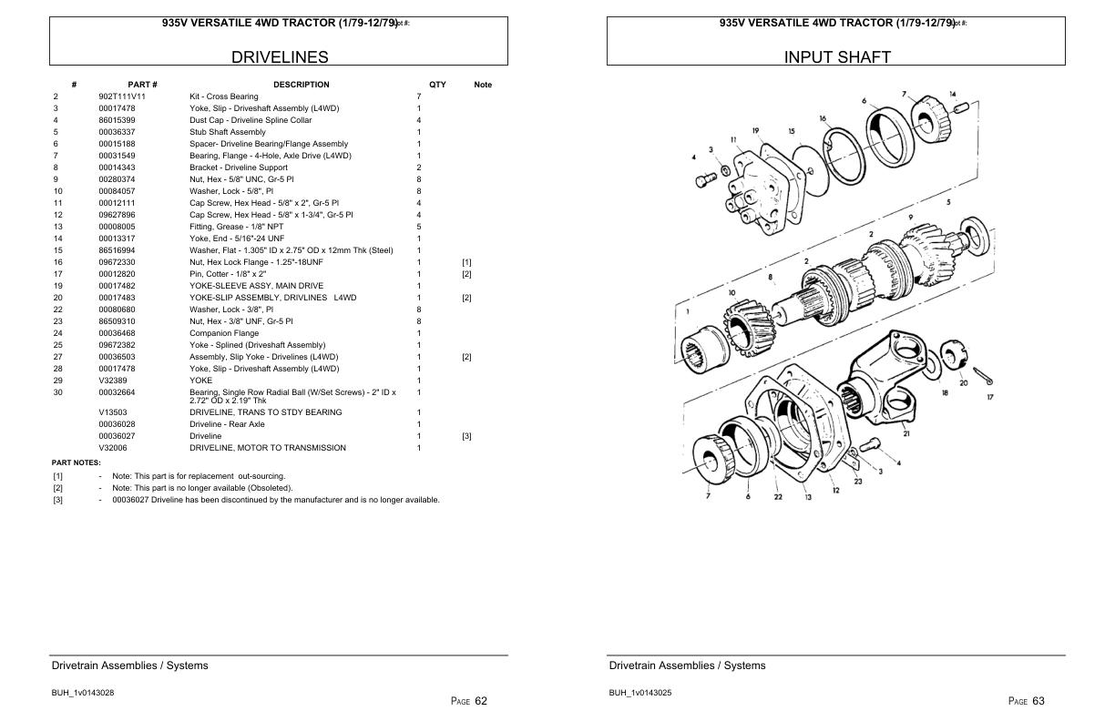 Versatile Tractor 935V 4WD Parts Catalog 1979