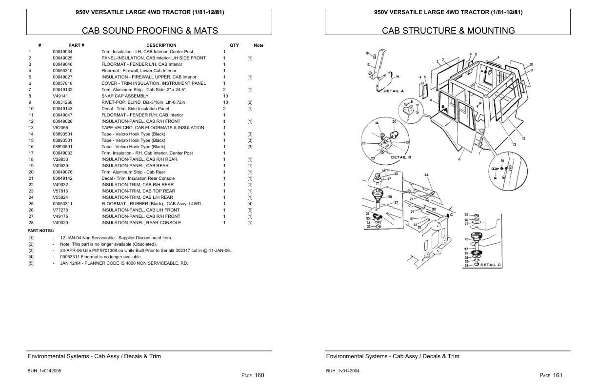Versatile Tractor 950V Large 4WD Parts Catalog 1981