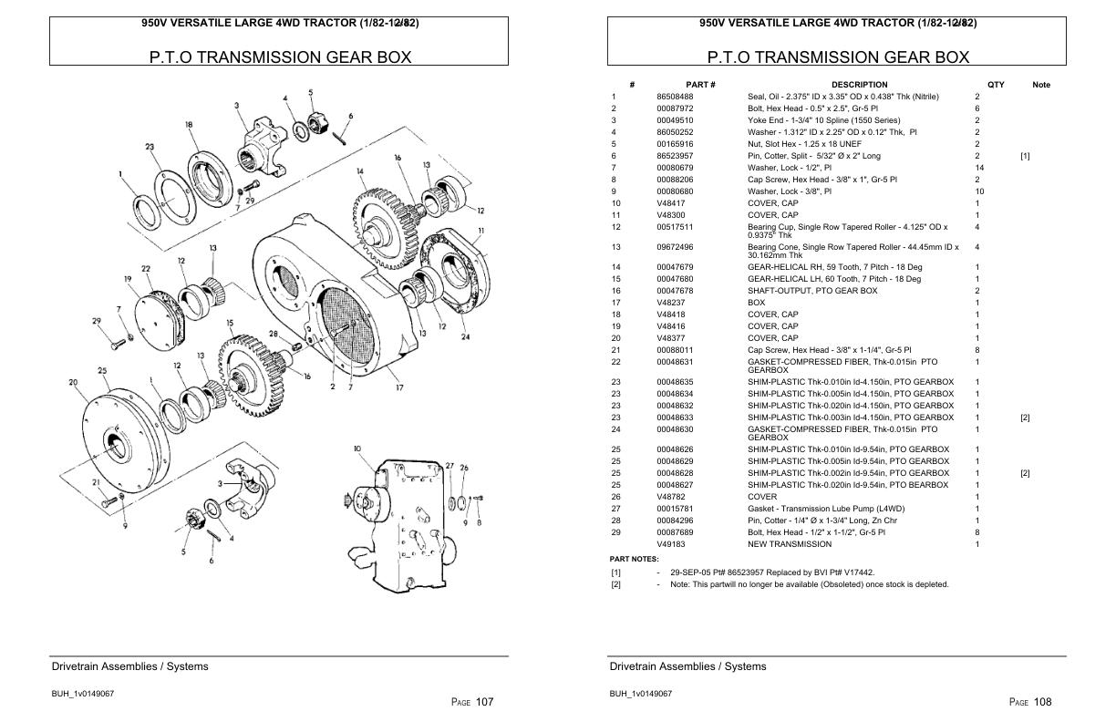 Versatile Tractor 950V Large 4WD Parts Catalog 1982