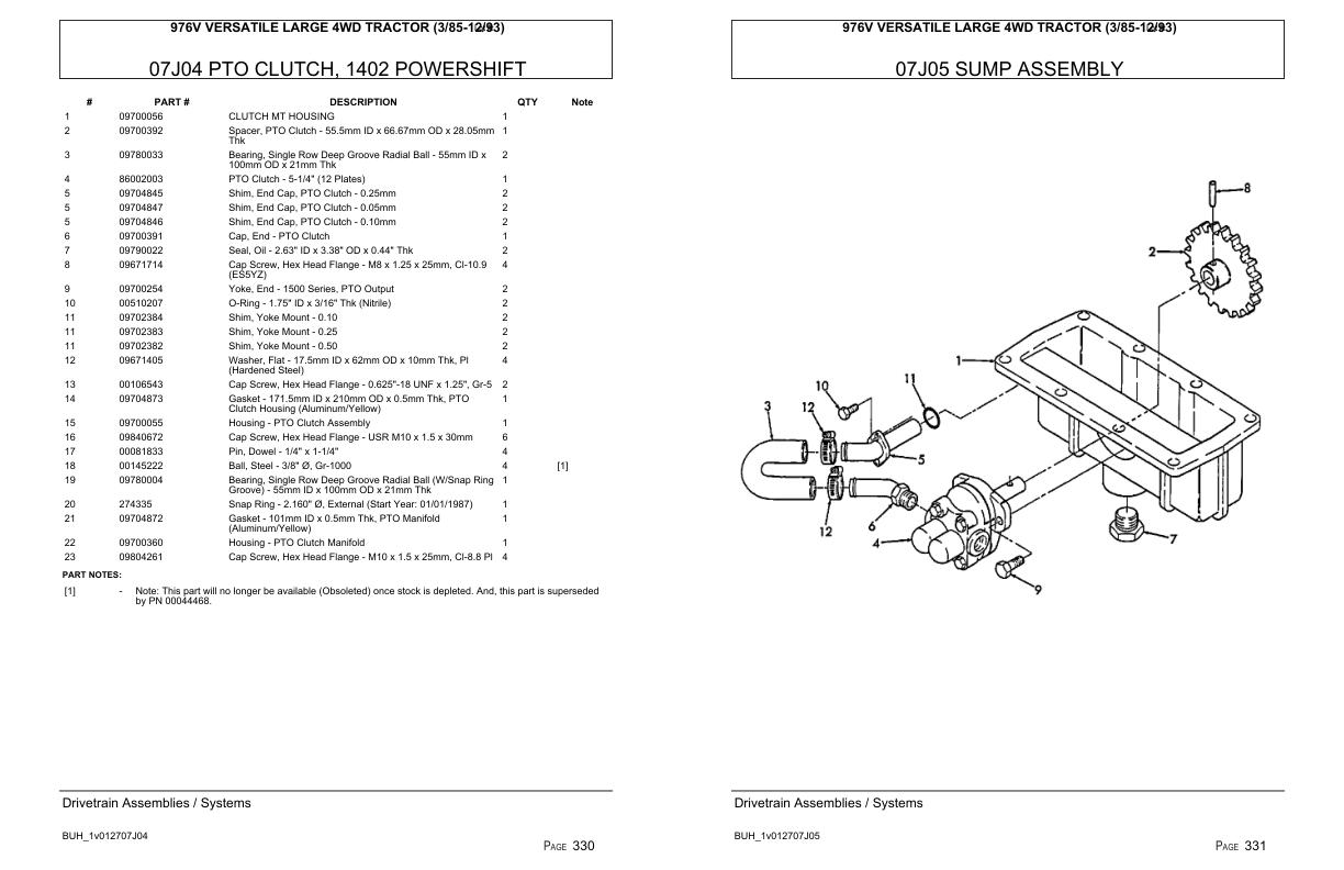 Versatile Tractor 976V Large 4WD Parts Catalog 19851993