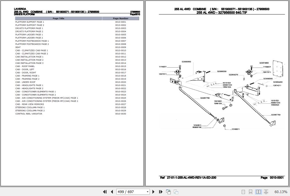Laverda Combine 255 AL 4WD Parts Catalog 27950500
