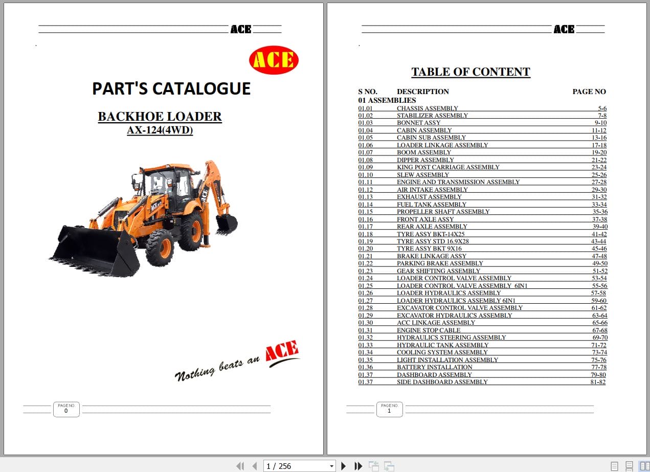 ACE Backhoe Loader AX124 4WD Parts Catalog