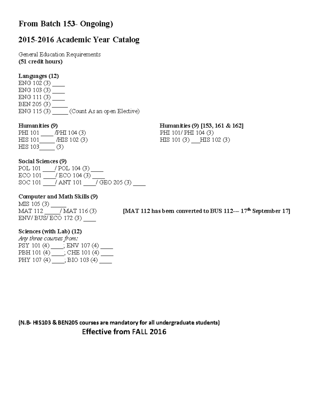 LL.B 130 credits (NEW) Law From Batch 153 Ongoing) 20152016