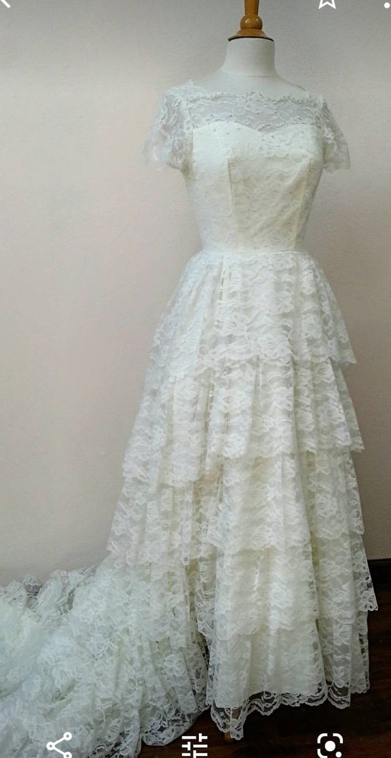 1950s Vintage Wedding Gown Chantilly Lace, netting … Gem