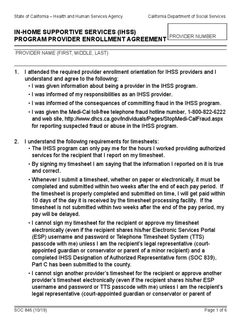 SOC 846 Provider Enrollment Agreement (Rev 102019) EN PDF
