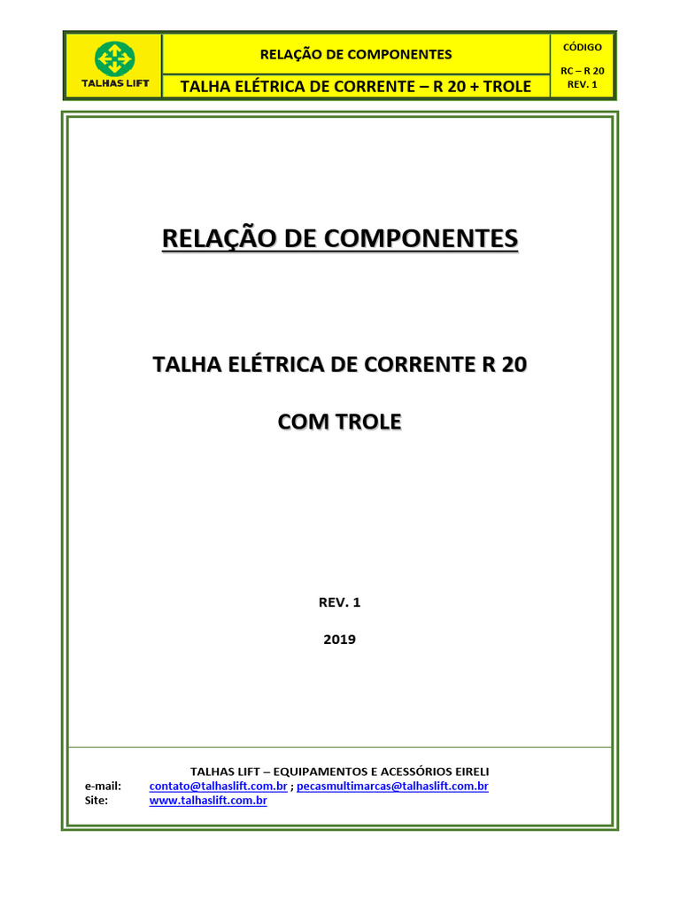 Relação Componentes Talha R 20 + Trole Rev. 1 2019 PDF Bens