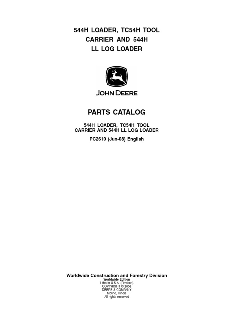 John Deere 544H, TC54H Tool Carrier & 544H LL Log Parts Catalog PC2610
