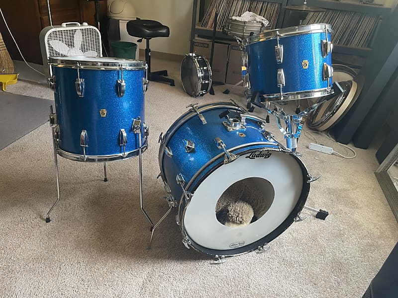 Vintage Ludwig Downbeat set, 121420, blue sparkle iz 60ih/70ih