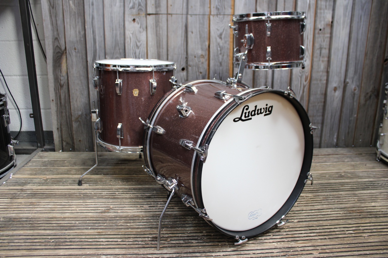 Ludwig 1966 Downbeat Outfit in Burgundy Sparkle rustydrums.co.uk