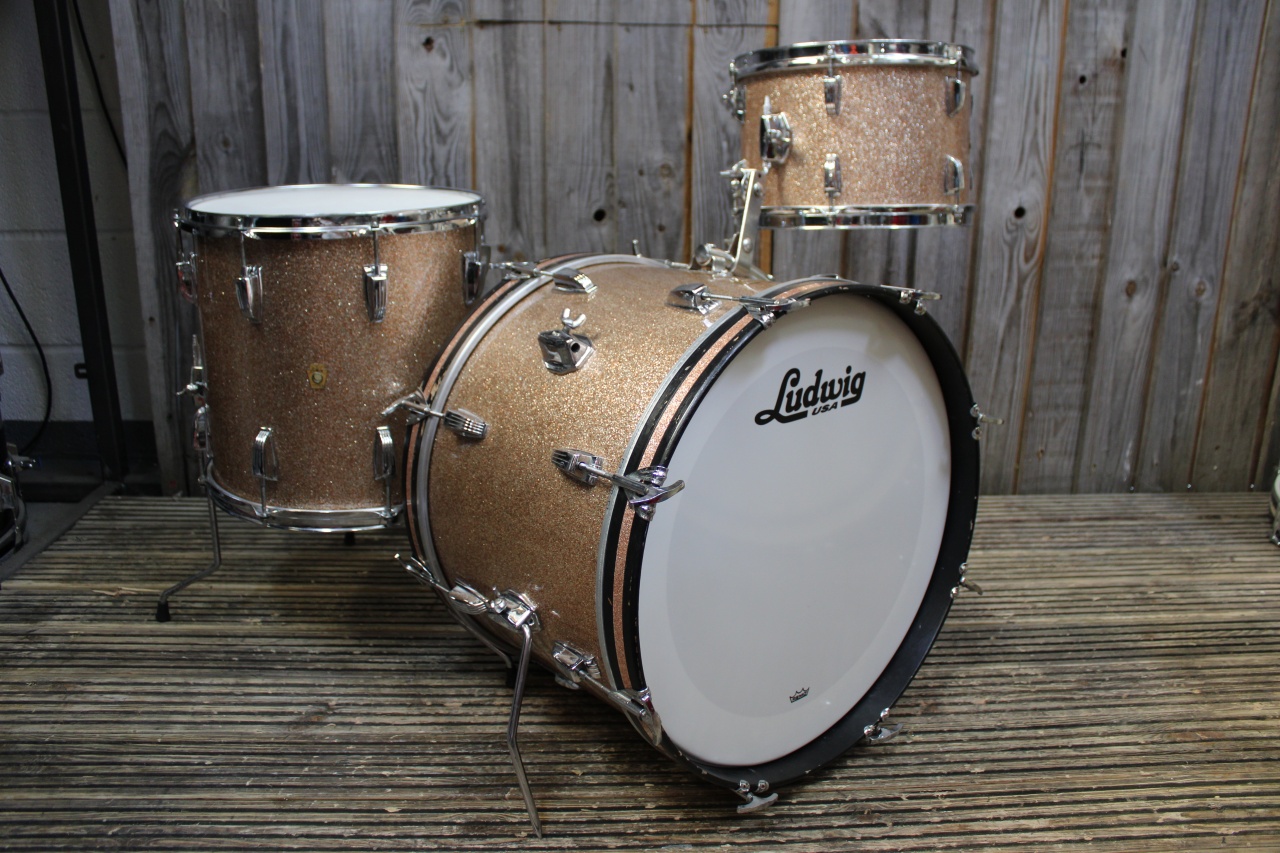 Ludwig 1964 Downbeat Outfit in Champagne Sparkle rustydrums.co.uk