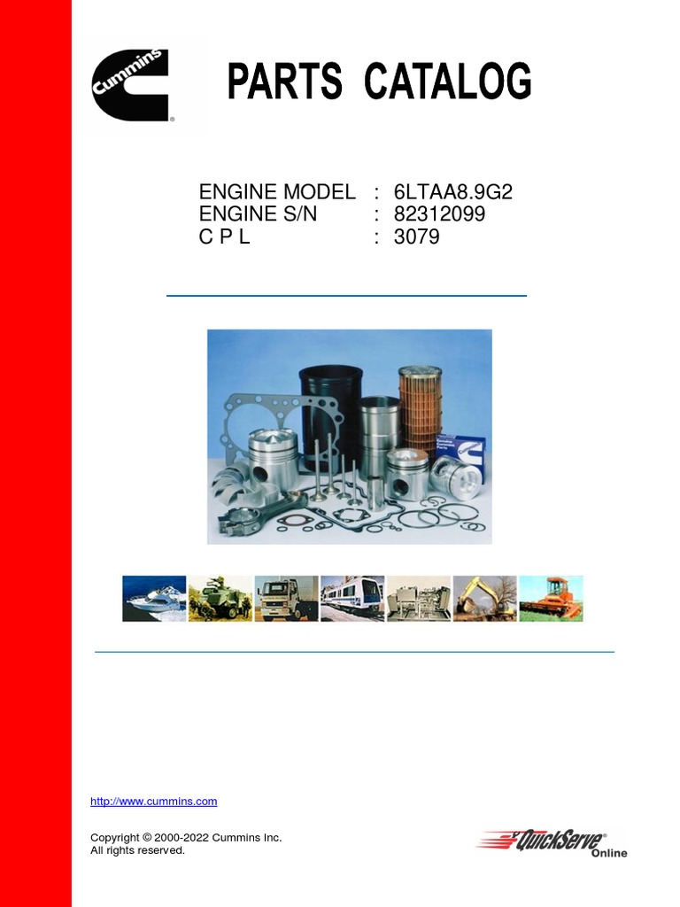 Parts Catalog Cummins, 6LTAA8.9G2 ESN 82312099 CPL 307911 PDF