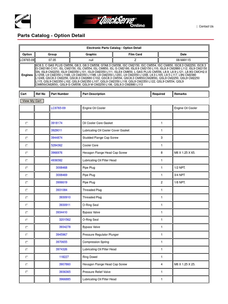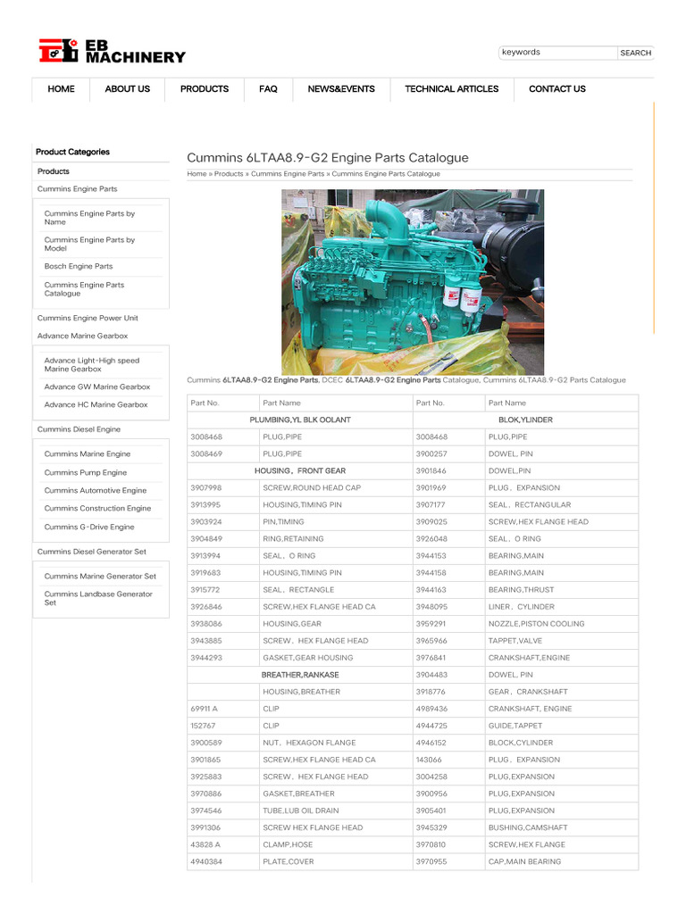 Cummins 6LTAA8.9G2 Engine Parts Catalogue Cummins Engine Part PDF