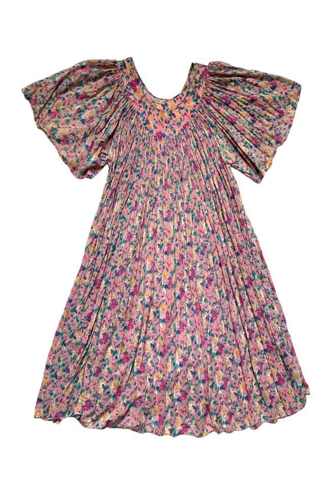 Beautiful Vintage 70s Brightly Colored Floral Flutter Sleeve Dress