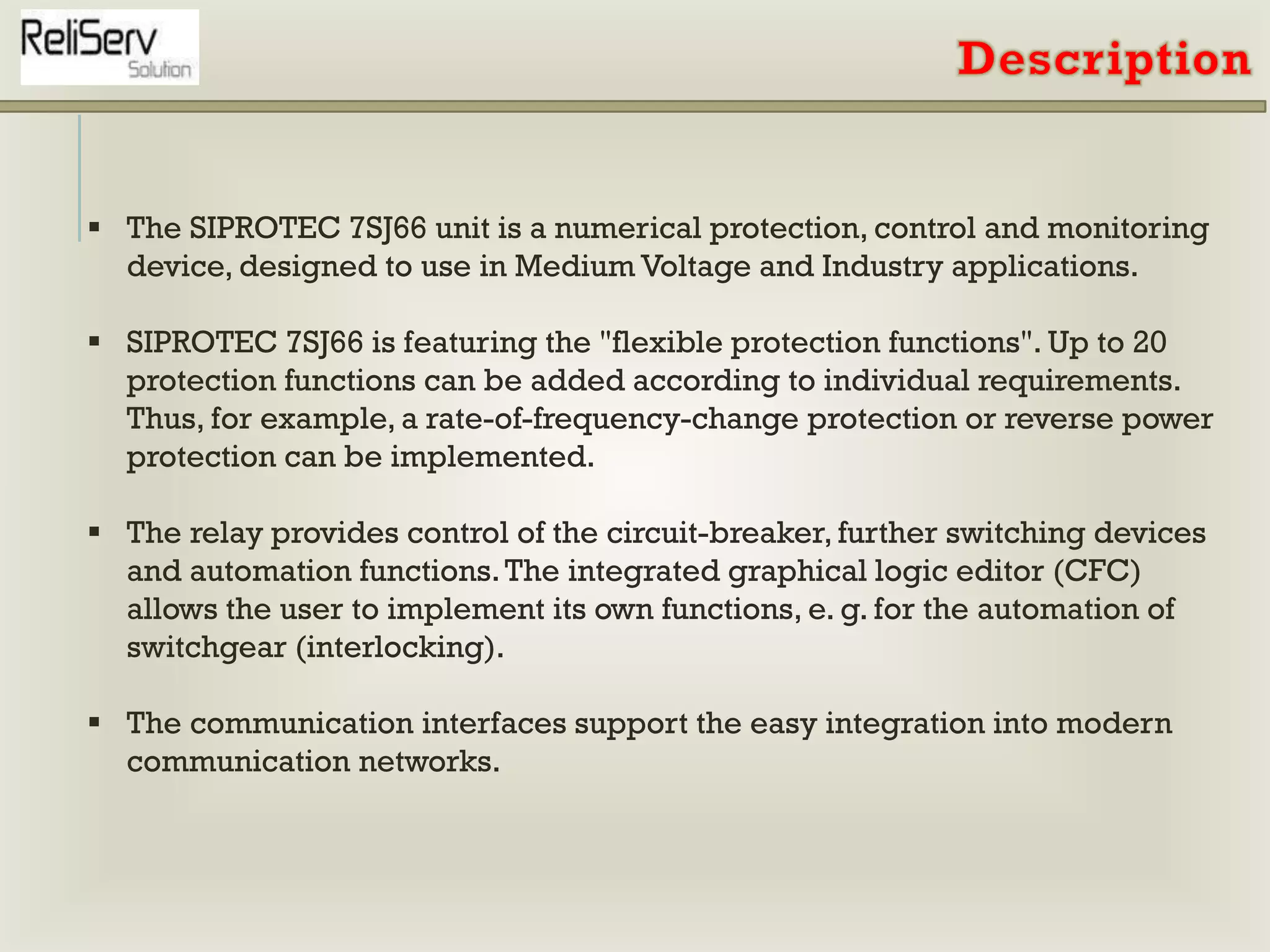 Protect Your Power System with Siemens SIPROTEC 4 7SJ66