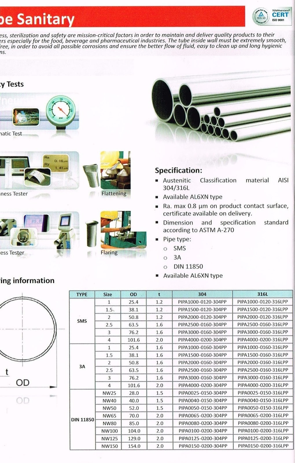 SPESIFIKASI MESIN FARMASI CATALOG STANDAR PIPA SANITARY & TEE