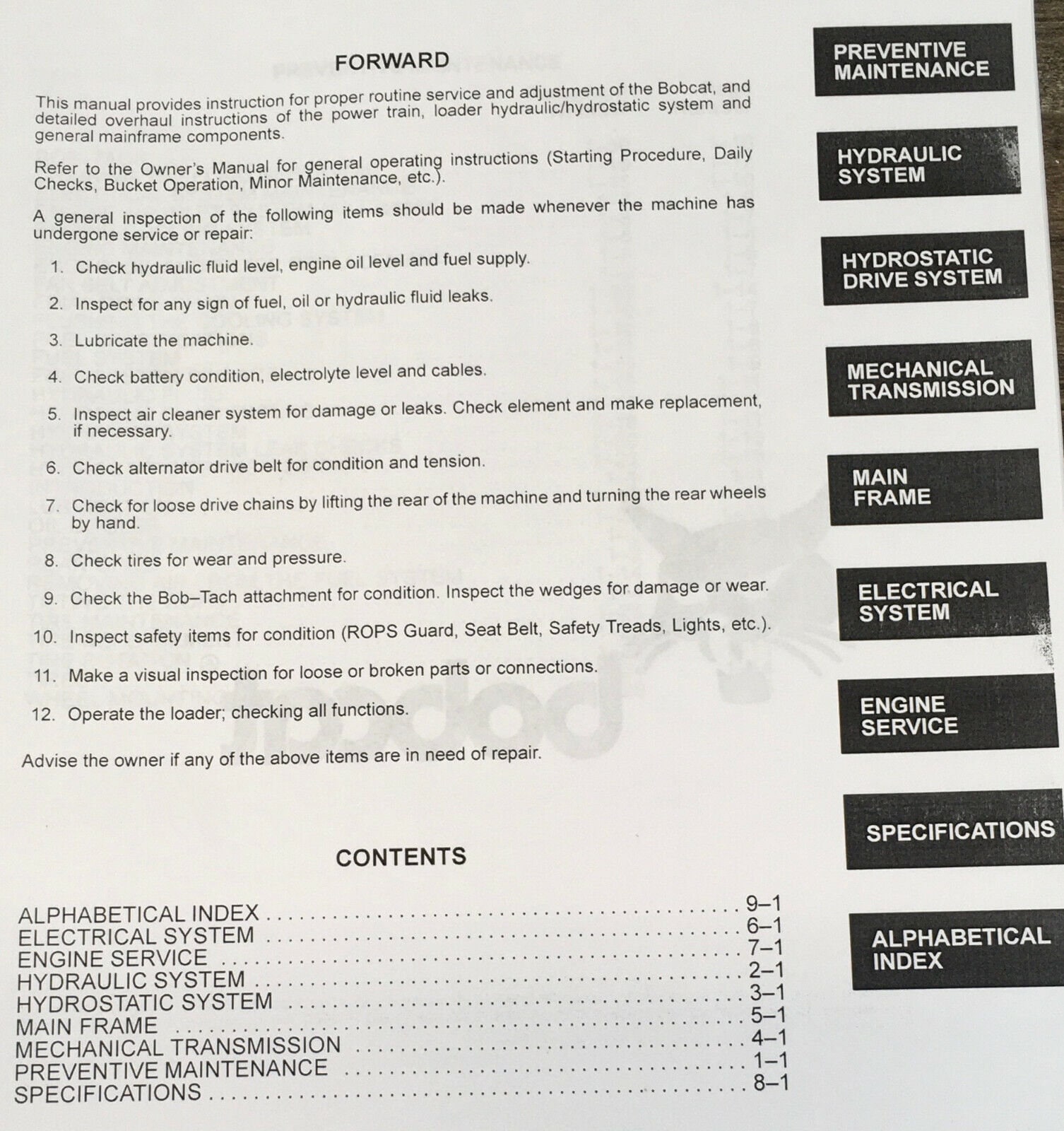 Bobcat 825 SkidSteer Loader Service Manual The Repair7 Manual