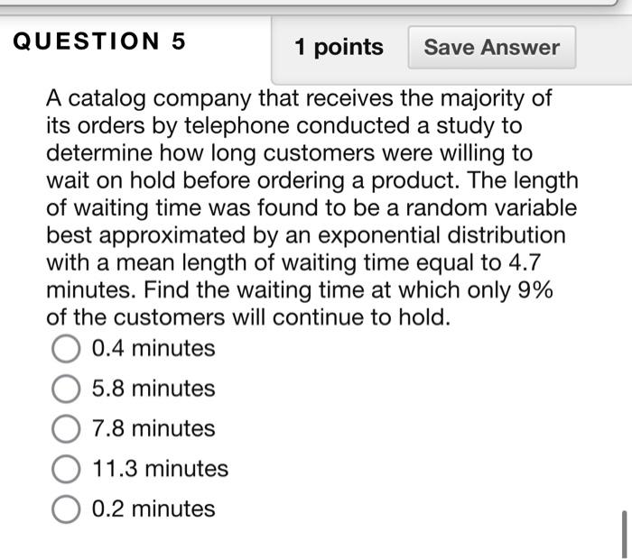 Solved QUESTION 4 A catalog company that receives the