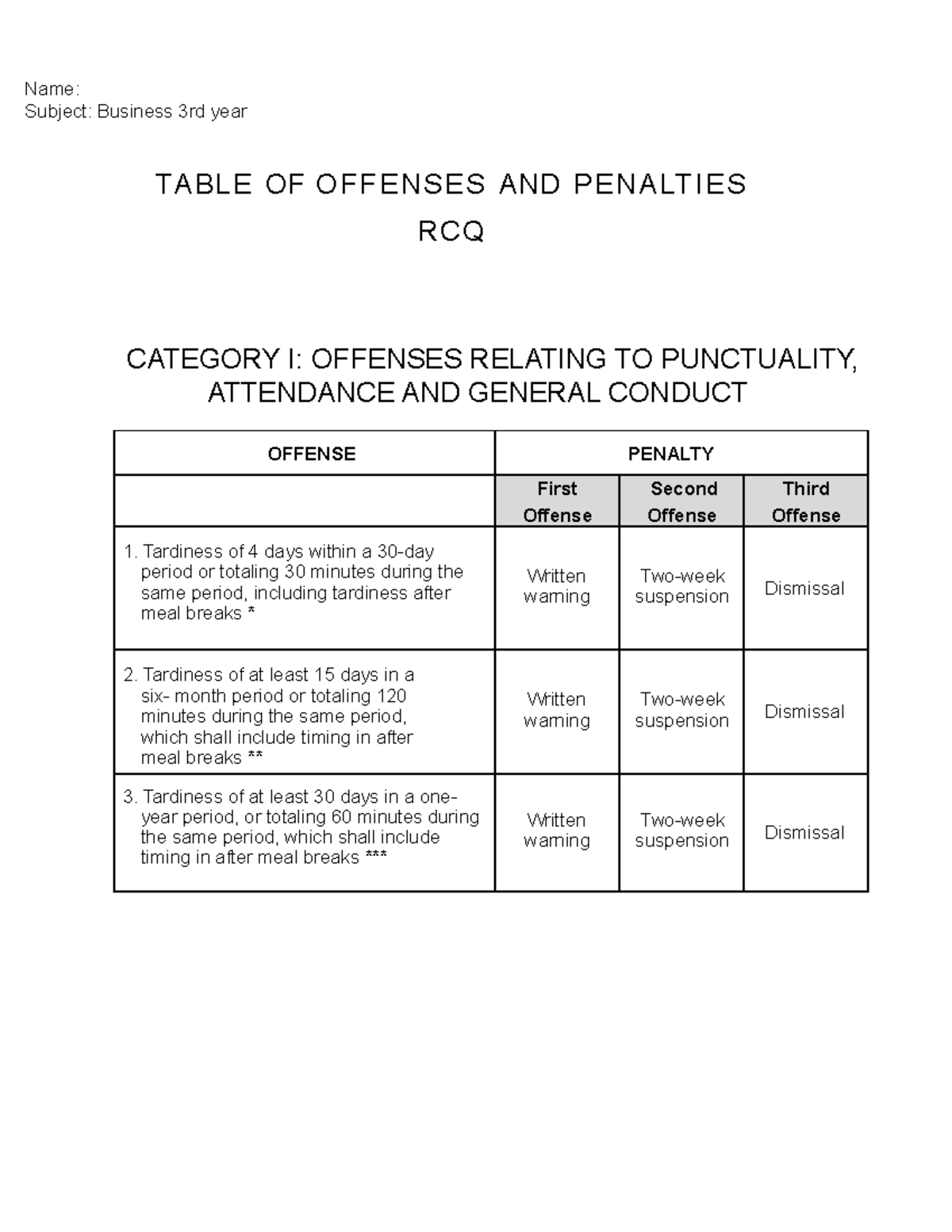 Offenses AND Penalties Name Subject Business 3rd year TABLE OF
