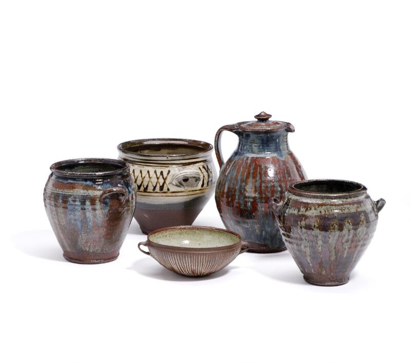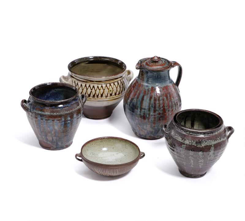 Gutte Eriksen Five hardburnt objects comprising a lidded jug MutualArt