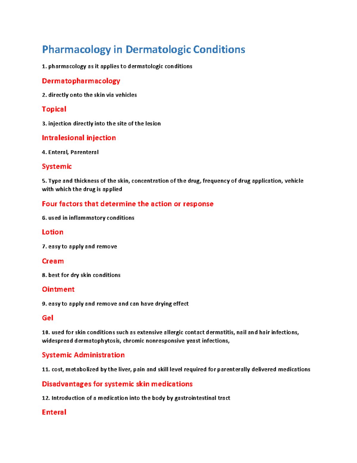 Pharmacology in Dermatologic Conditions pharmacology as it applies to