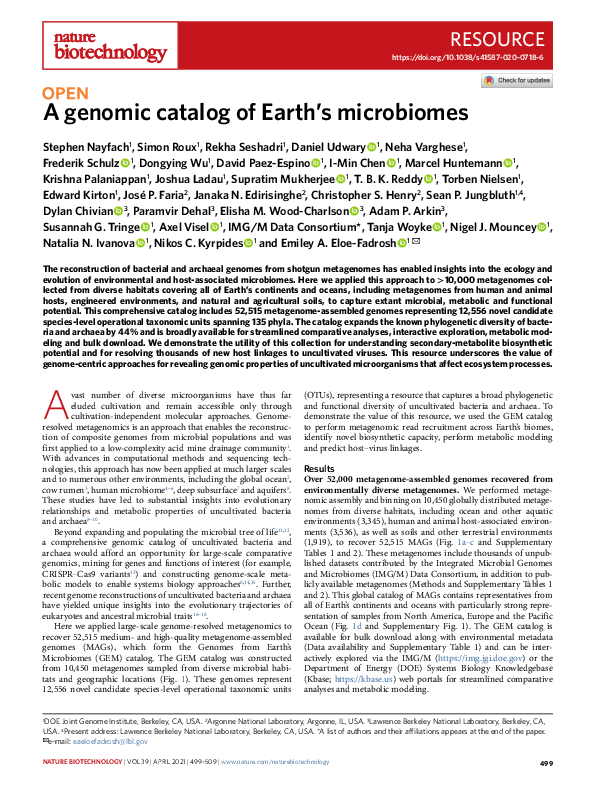 (PDF) A genomic perspective across Earth’s microbiomes reveals that