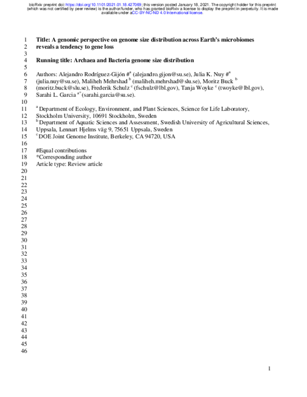 (PDF) A Genomic Perspective Across Earth’s Microbiomes Reveals That