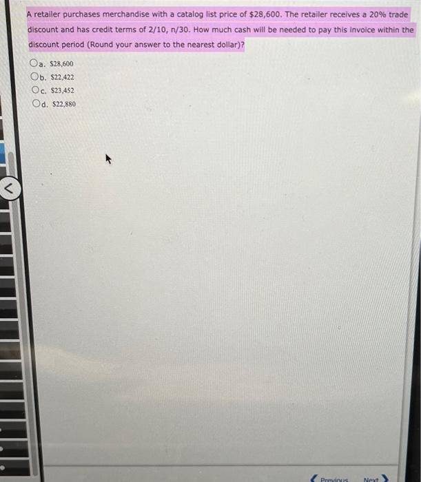 (Solved) A Retailer Purchases Merchandise With A Catalog List Price