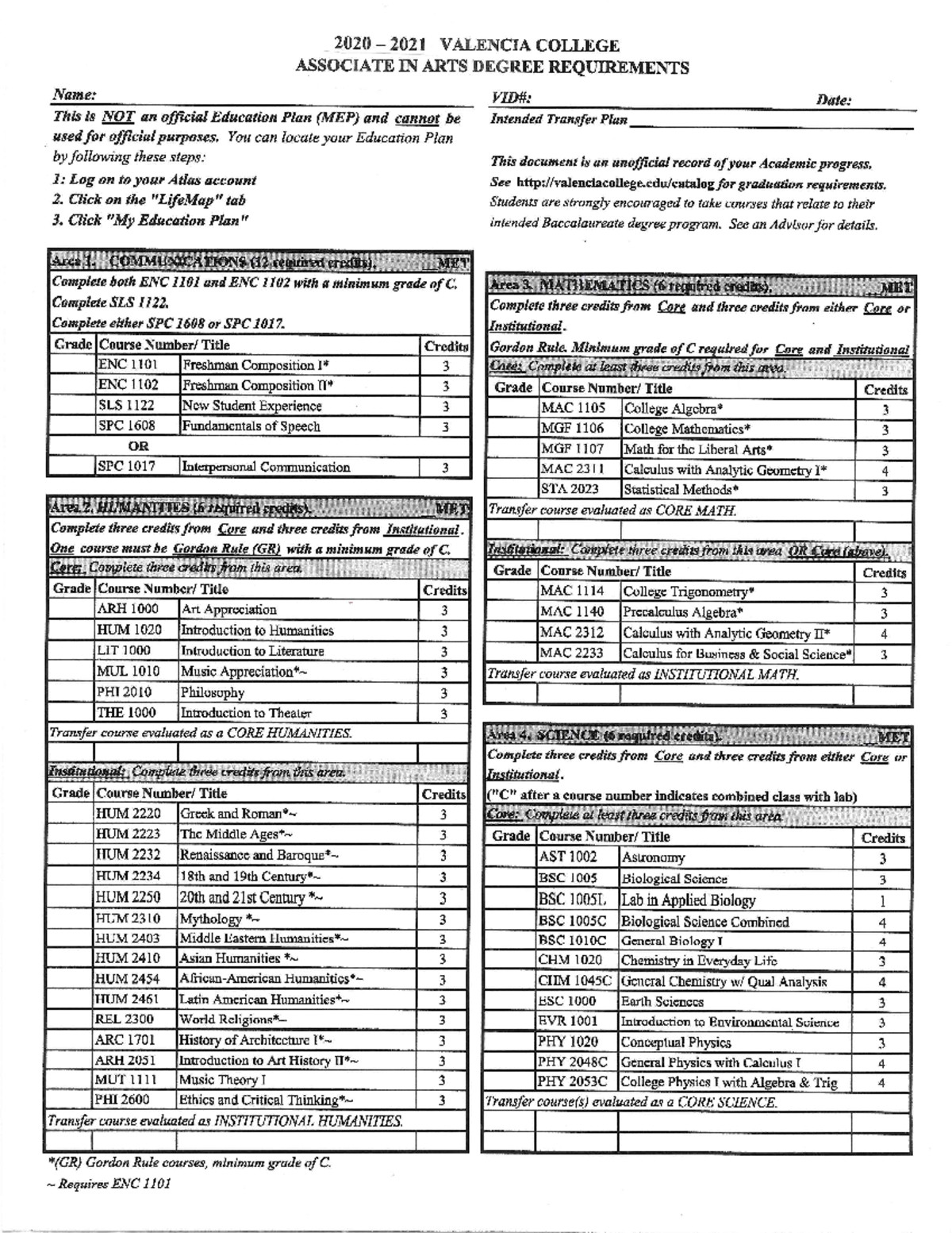 AA Degree Requirement 20202021 SLS 1122 Studocu