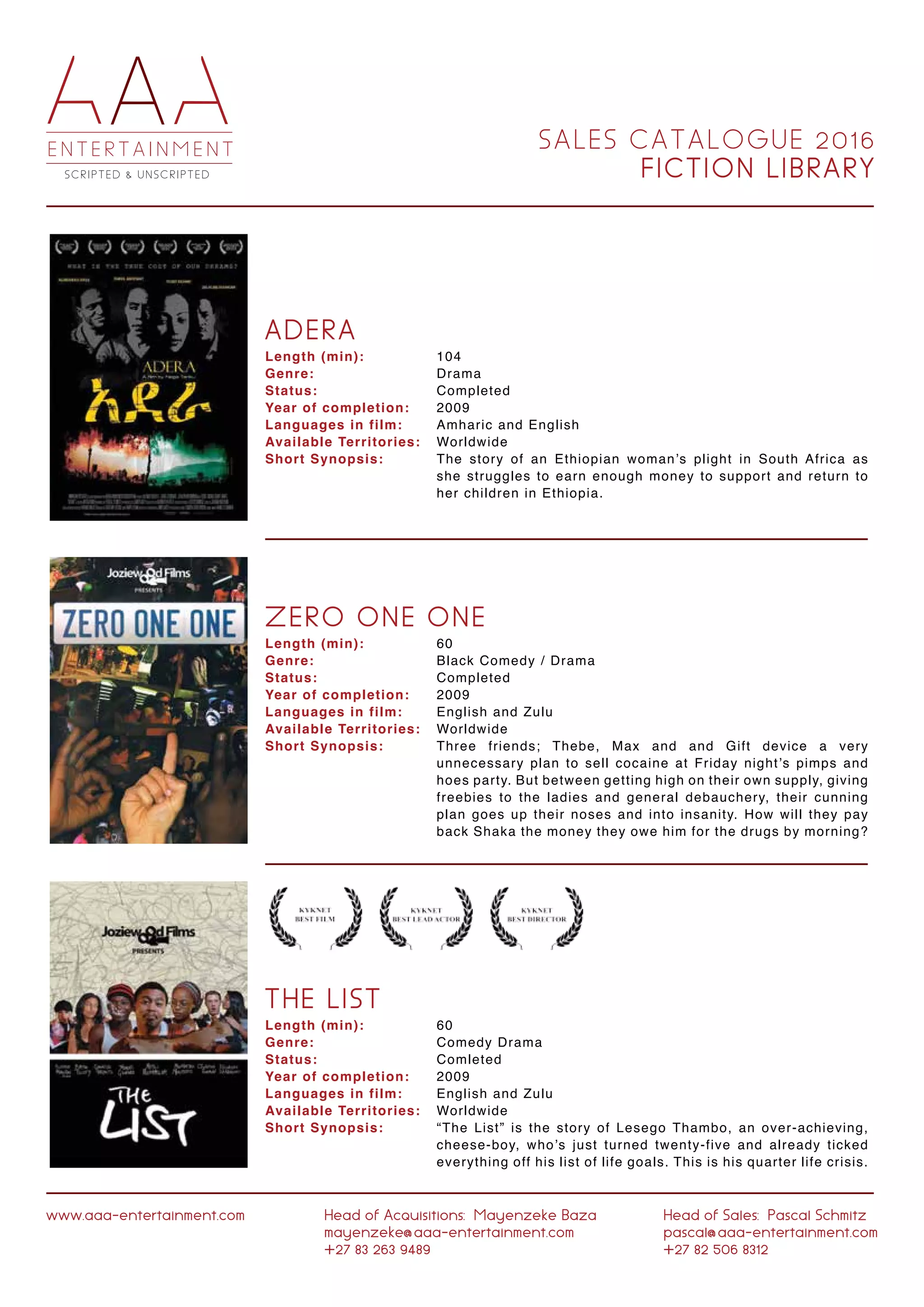 Notre catalogue aaa Production