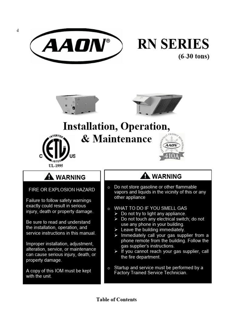 AAON RN SERIES INSTALLATION OPERATION & MAINTENANCE Pdf Download