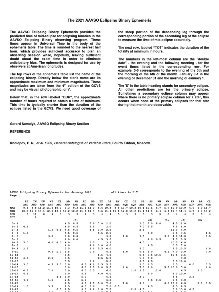 AAVSO EB Ephemeris 2021 PDF Eclipse Stars