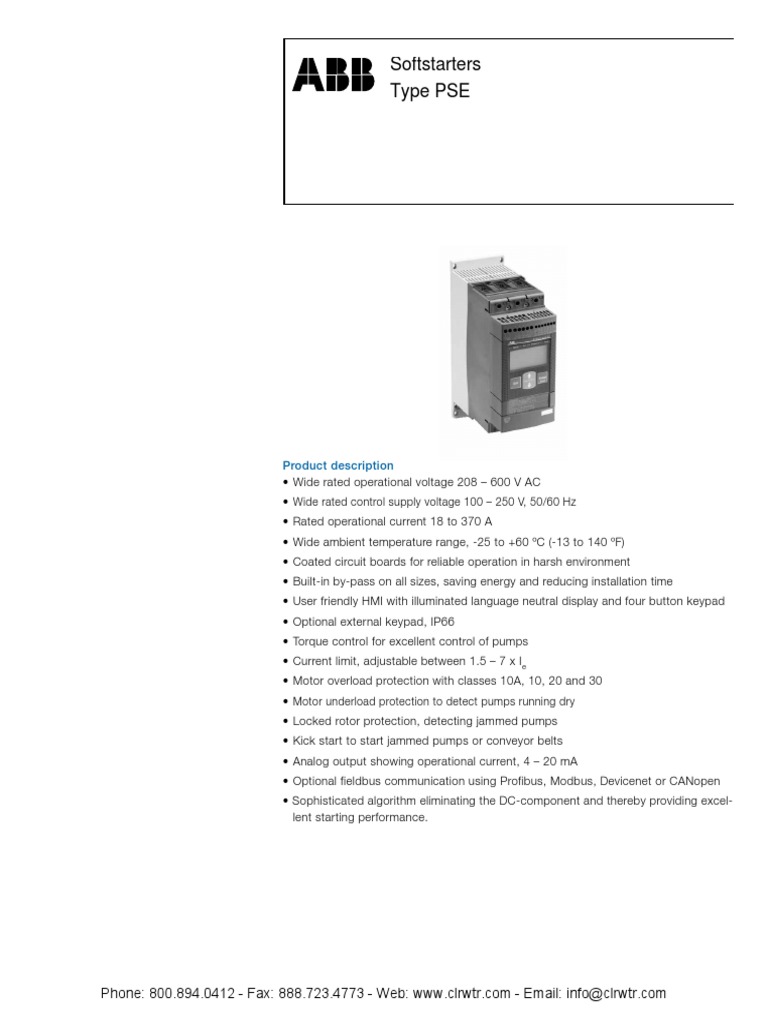 Abb Pse25060070 Pse Series Solidstate Reduced Voltage 3 Phase Softs