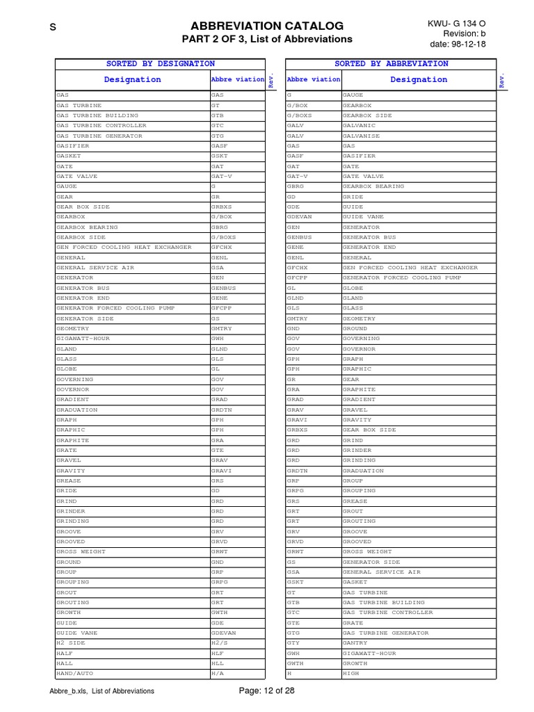 Abbreviation Catalog Part 2 PDF Engines Power Engineering