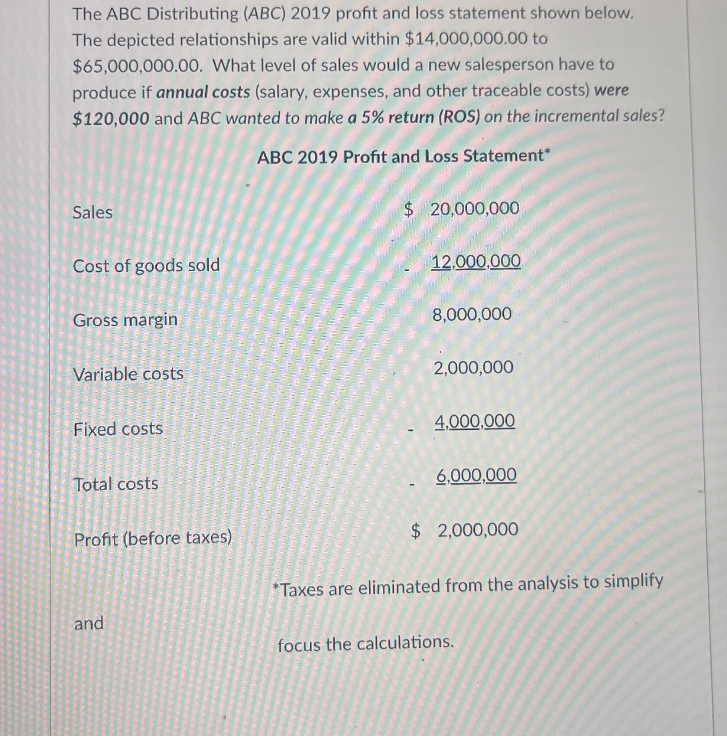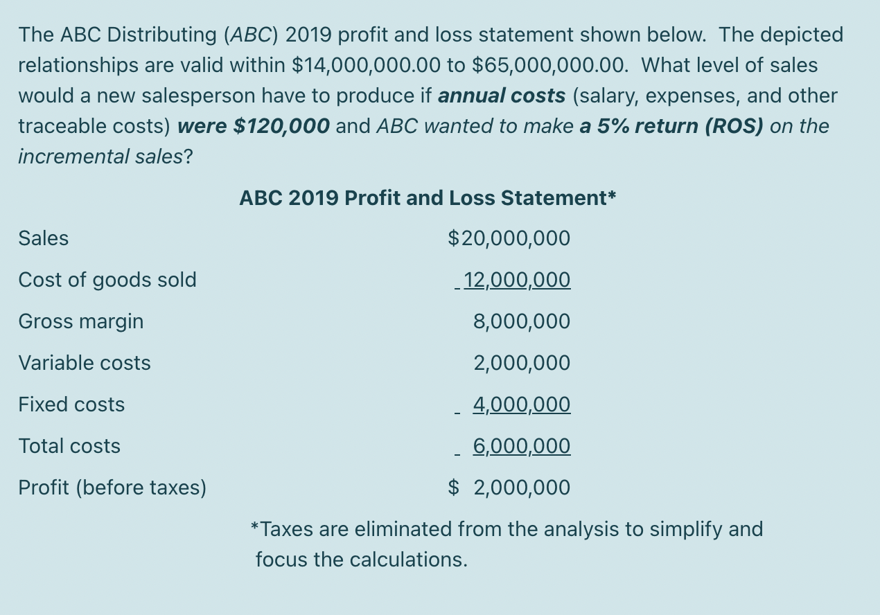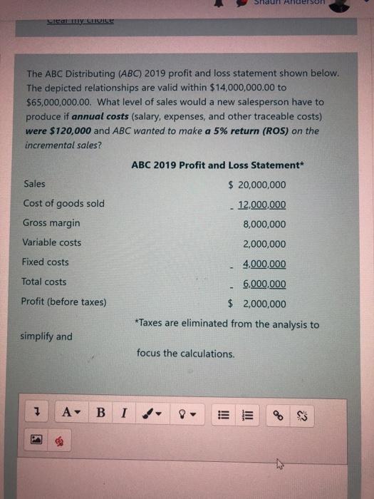 Solved The ABC Distributing (ABC)2019 profit and loss