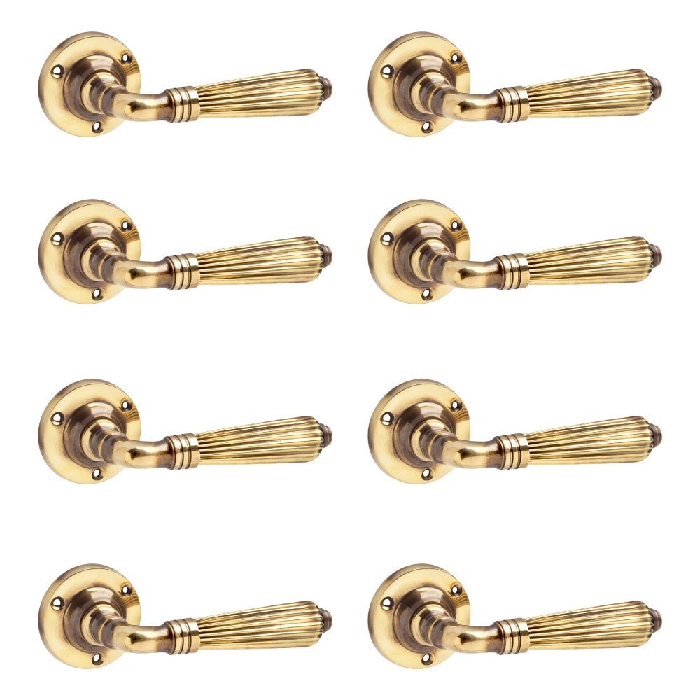 8 Pairs of Aged Brass Regency Lever Door Handles AB Hardware ABHardware