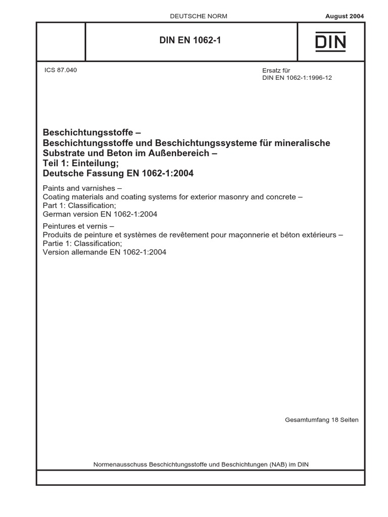 EN 106211996 Paints and varnishes Coating materials and coating