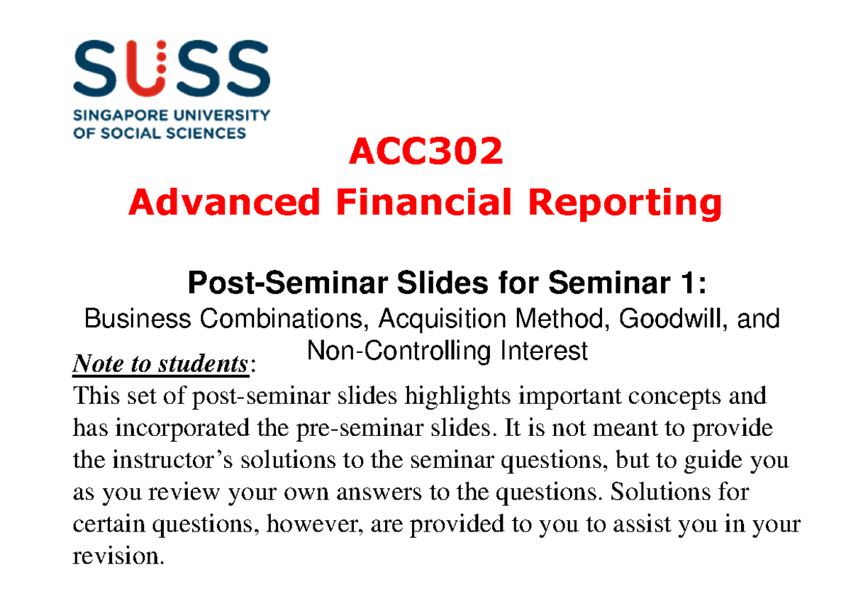 ACC302 PostSeminar Slides for Seminar 1 2023 ACC Advanced Financial