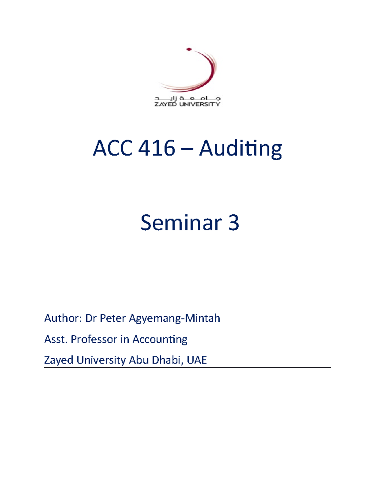 Seminar 3 acc ACC 416 Auditing Seminar 3 Author Dr Peter