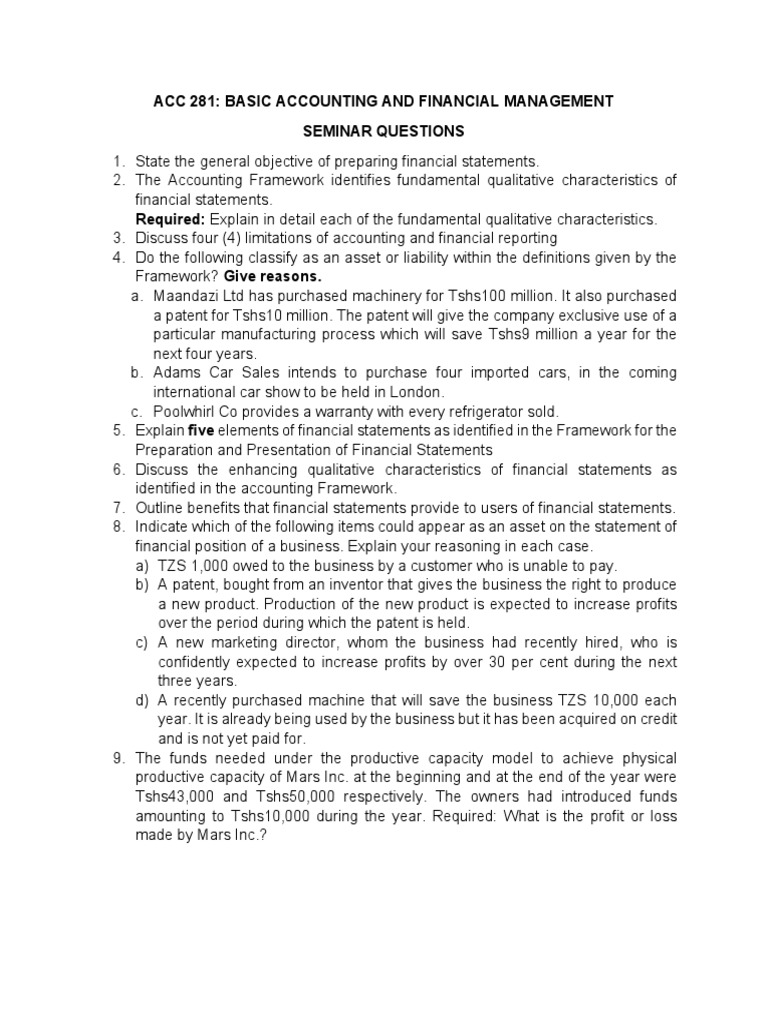 ACC 281 SEMINAR QUESTIONS Version 2 PDF