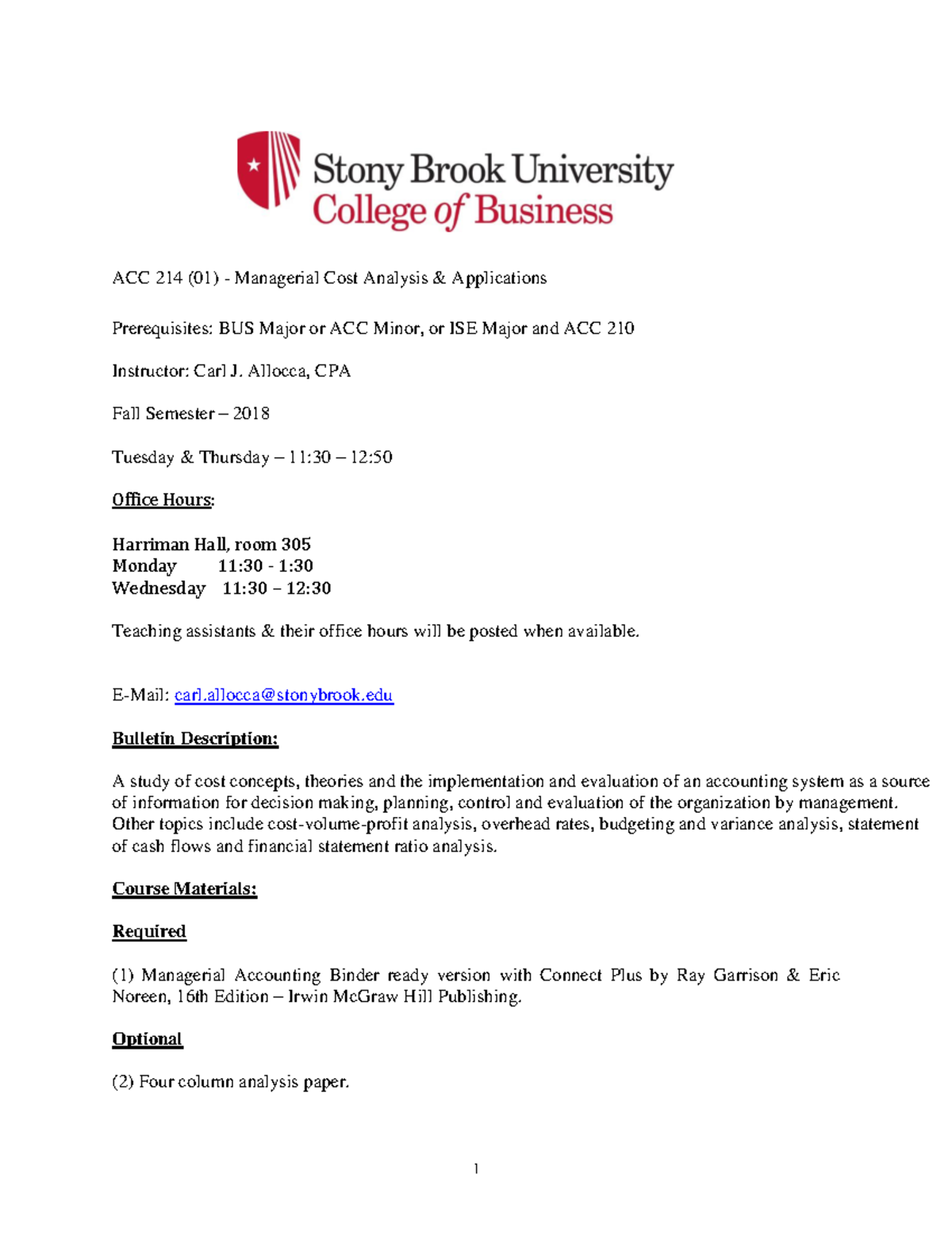 Acc214 01 fall 2018 syllabus ACC 214 (01) Managerial Cost Analysis