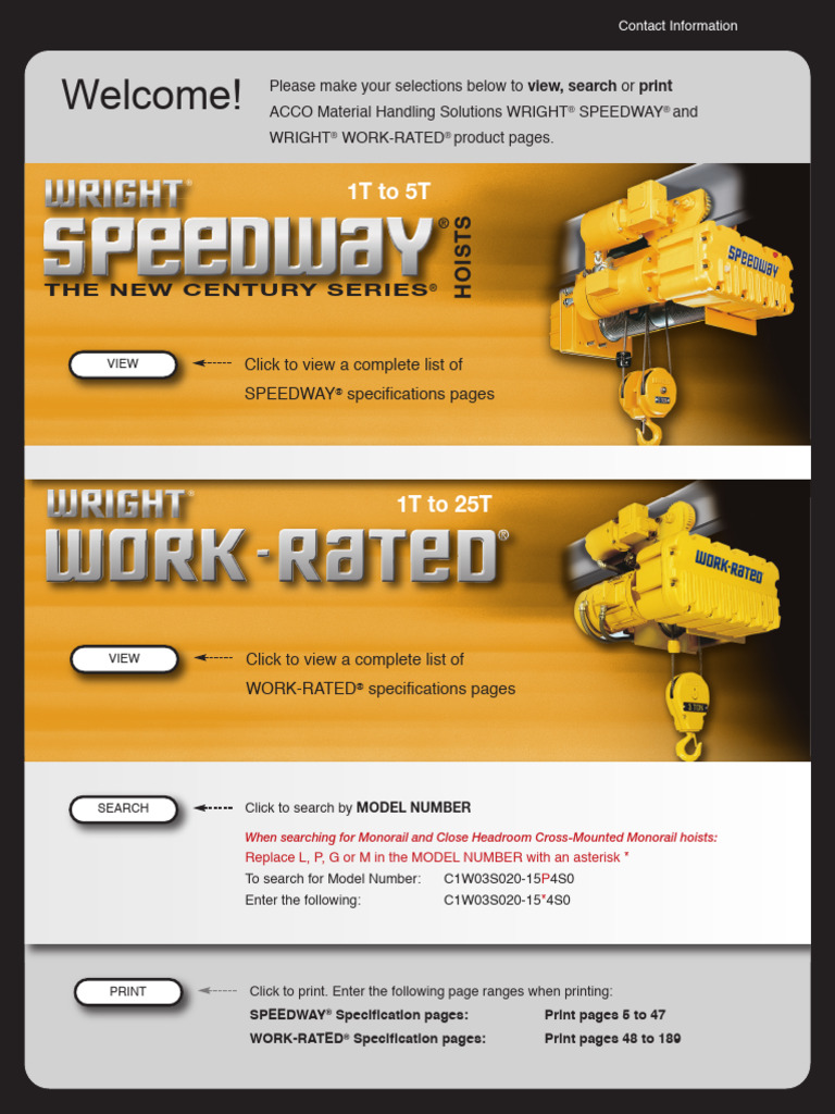 Acco Wright Wire Rope Hoist Engineering Catalog PDF Gear Bearing