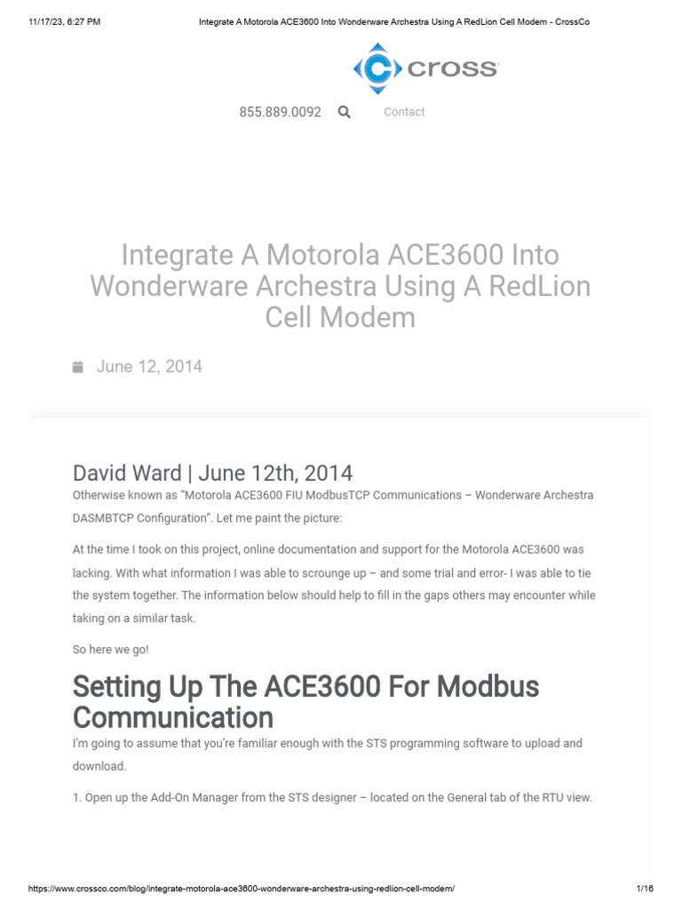 Integrate A Motorola ACE3600 Into Wonderware Archestra Using A RedLion