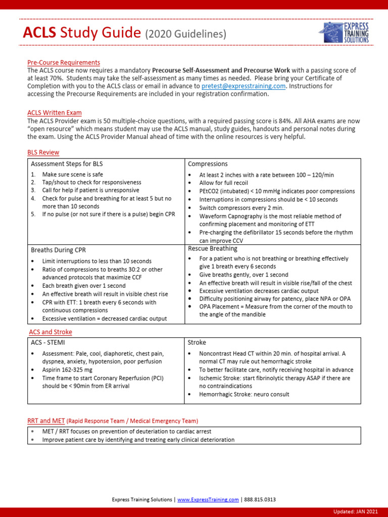 FREE 2021 ACLS Study Guide ACLS Made Easy! PDF Cardiopulmonary