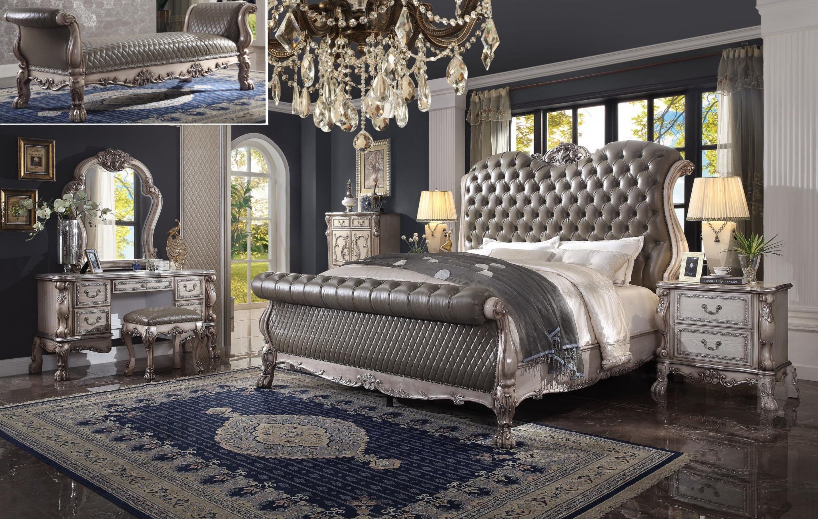 Acme Versailles 4Piece Upholstered Bedroom Set in Vintage Gray PU