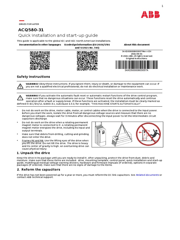 ACQ580 31 QISG A B5 Quickstart PDF Fuse (Electrical) Electric Motor
