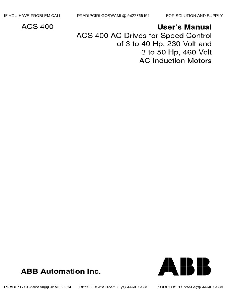 ABB ACS400 MANUAL ACS400US04 PreRead eBay