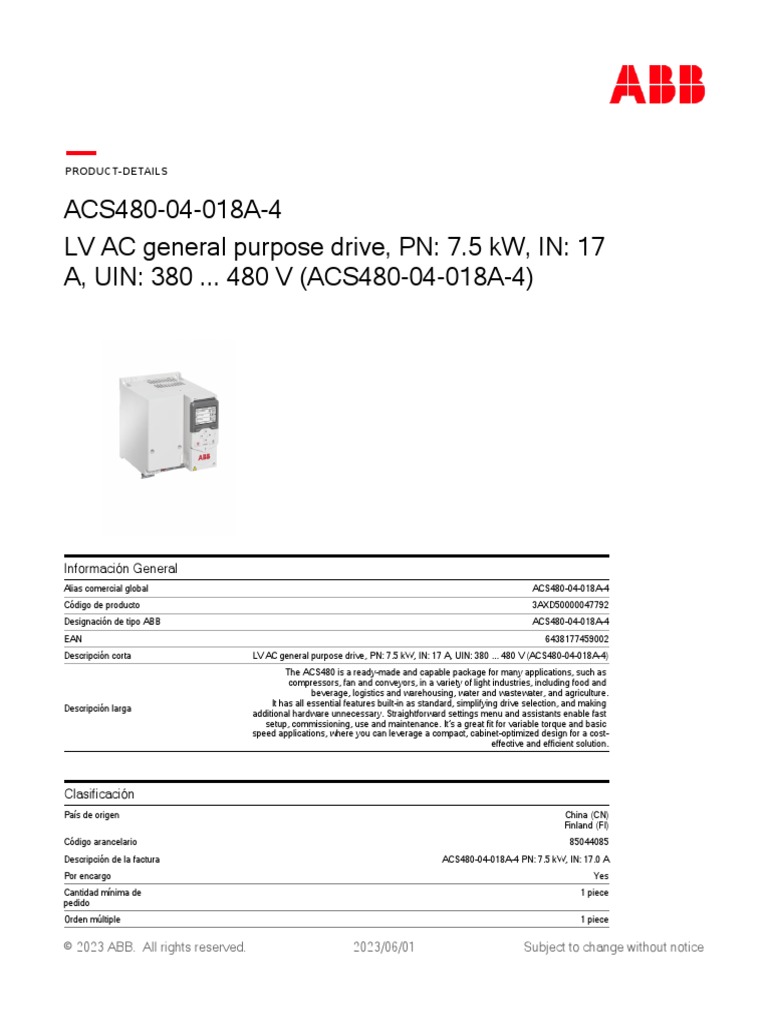 ACS4800412A74+J424+OL540 Abb, Inverter Drive, ACS480 Series, Three