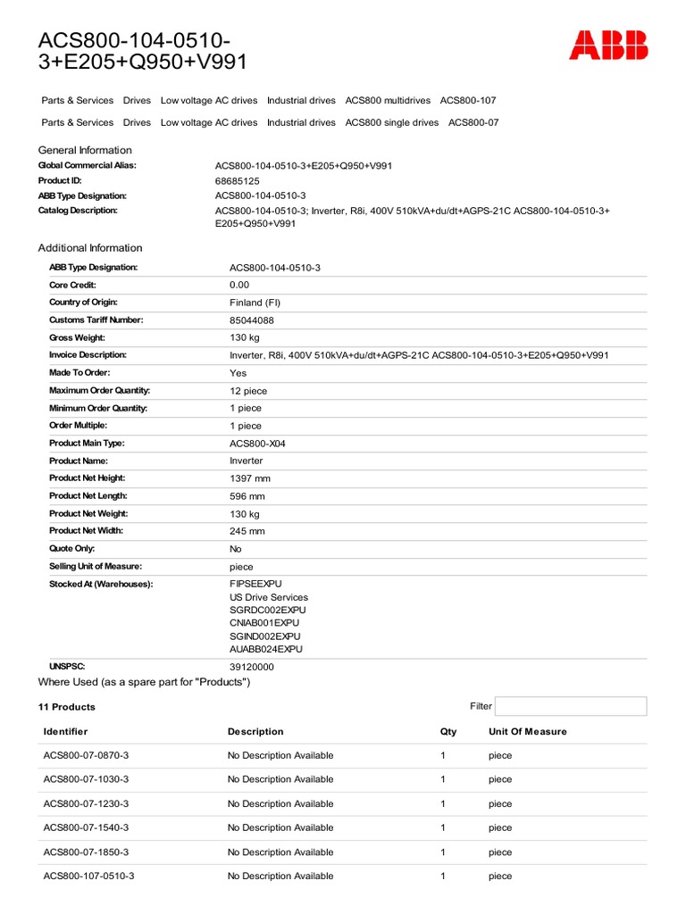Abb Acs800 Spare Parts List Reviewmotors.co